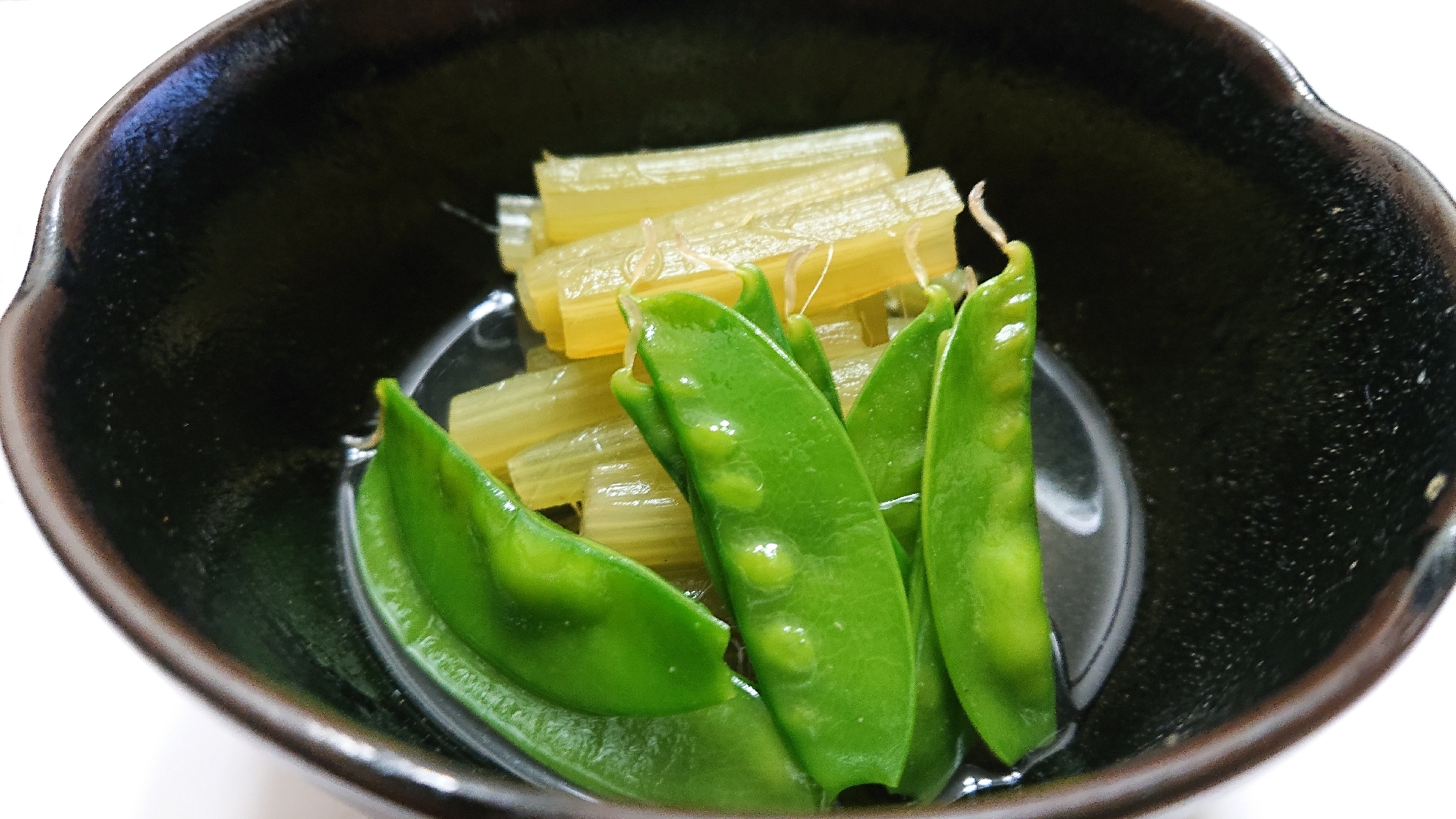 絹さやのおひたしの作り方 緑色を長持ちさせる二度づけの方法 煮物レシピと調味料の割合